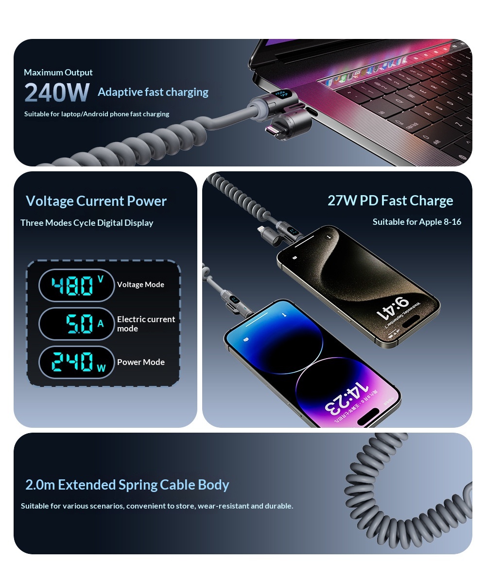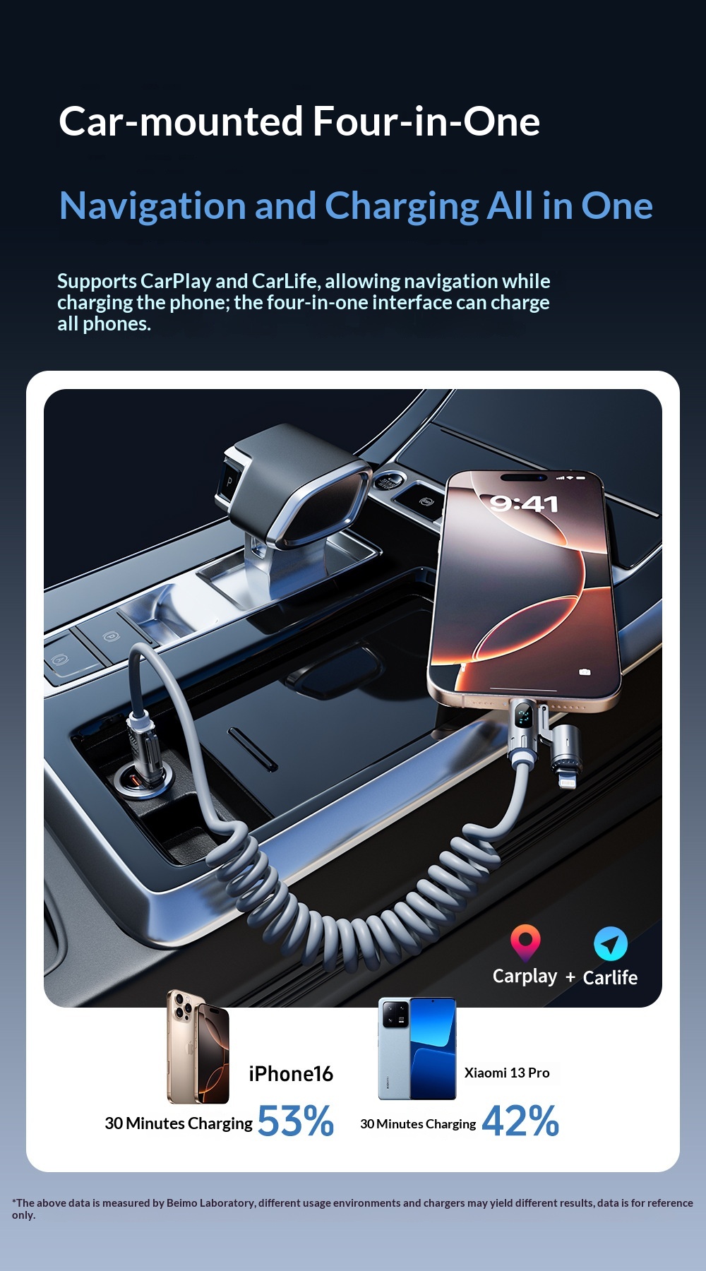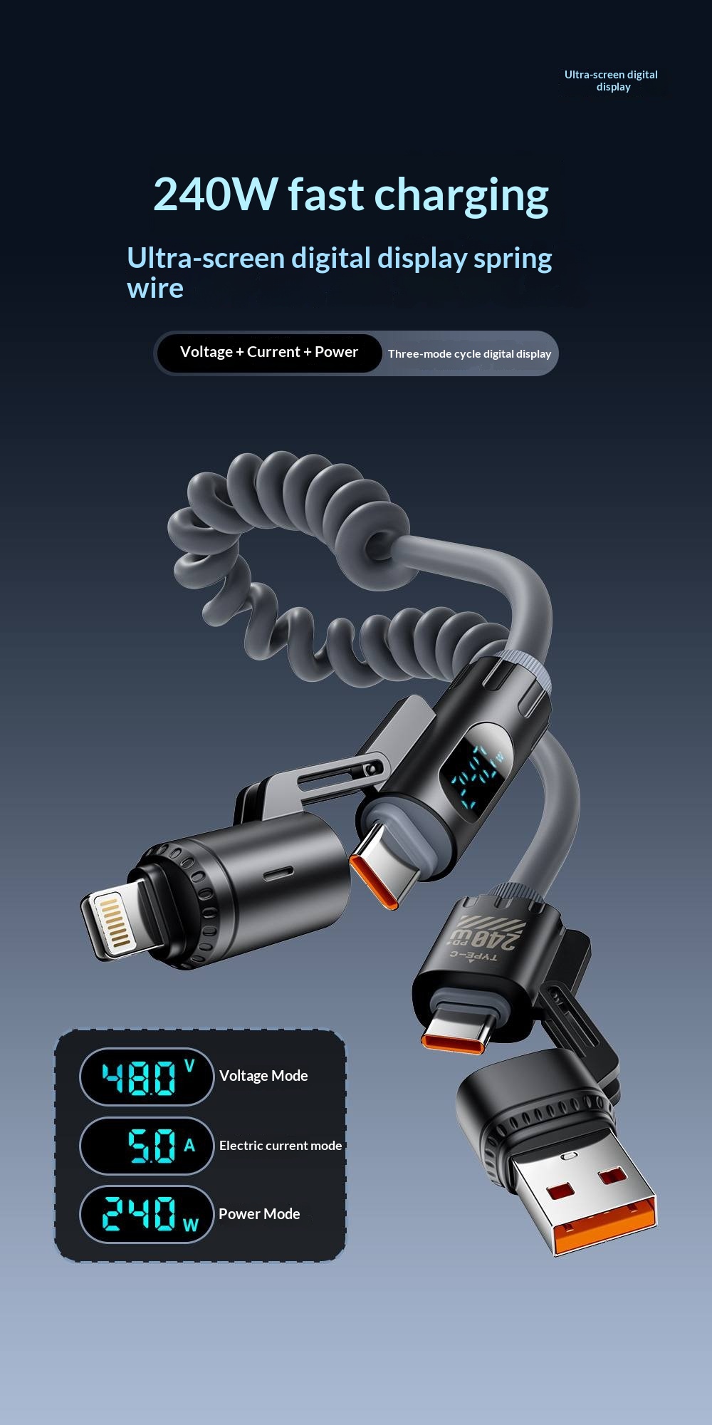 Digital Display Spring 4-in-1 CarPlay In-Car 2m Data Cable