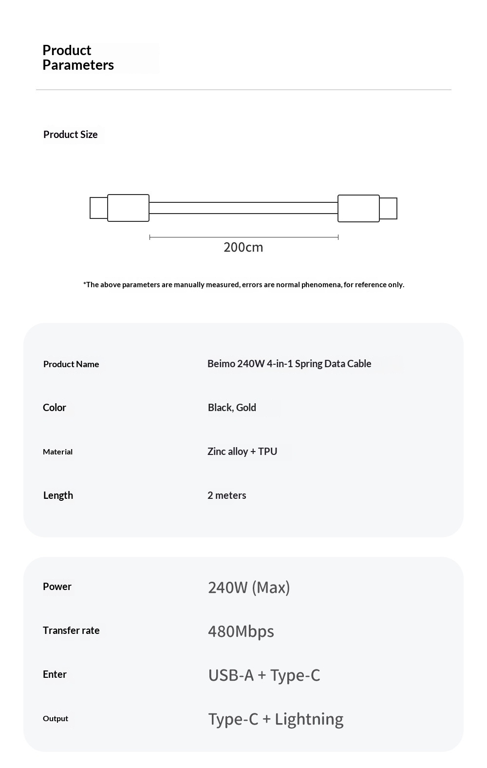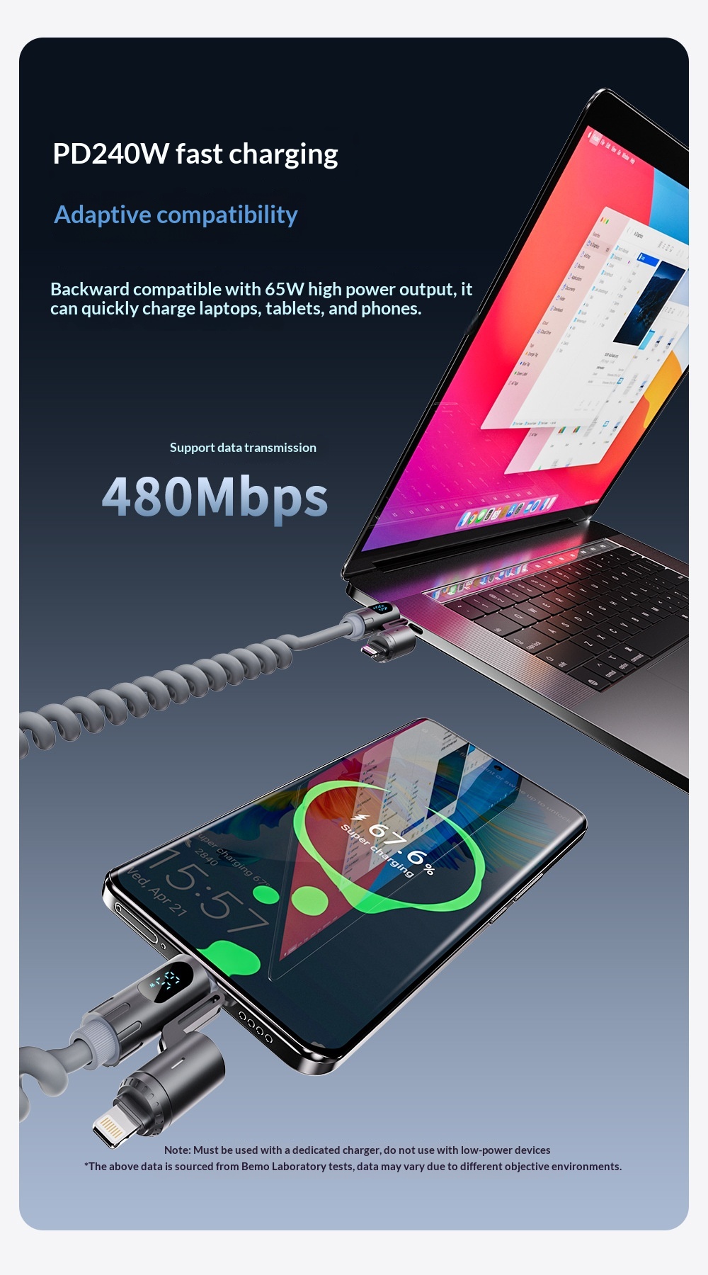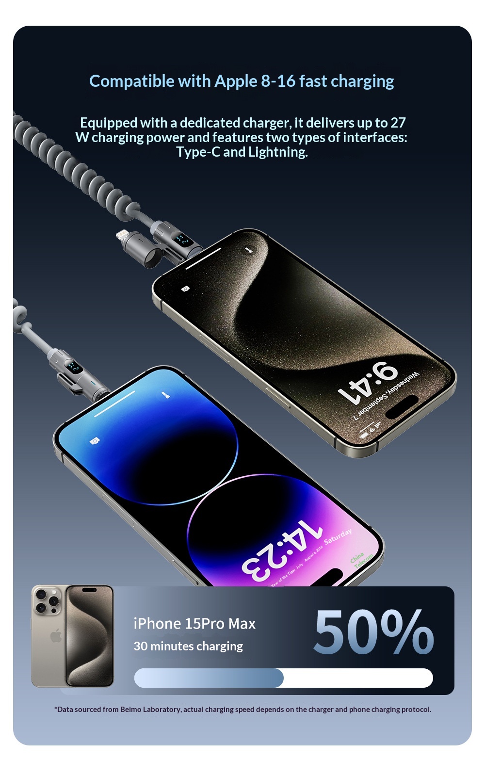 Digital Display Spring 4-in-1 CarPlay In-Car 2m Data Cable